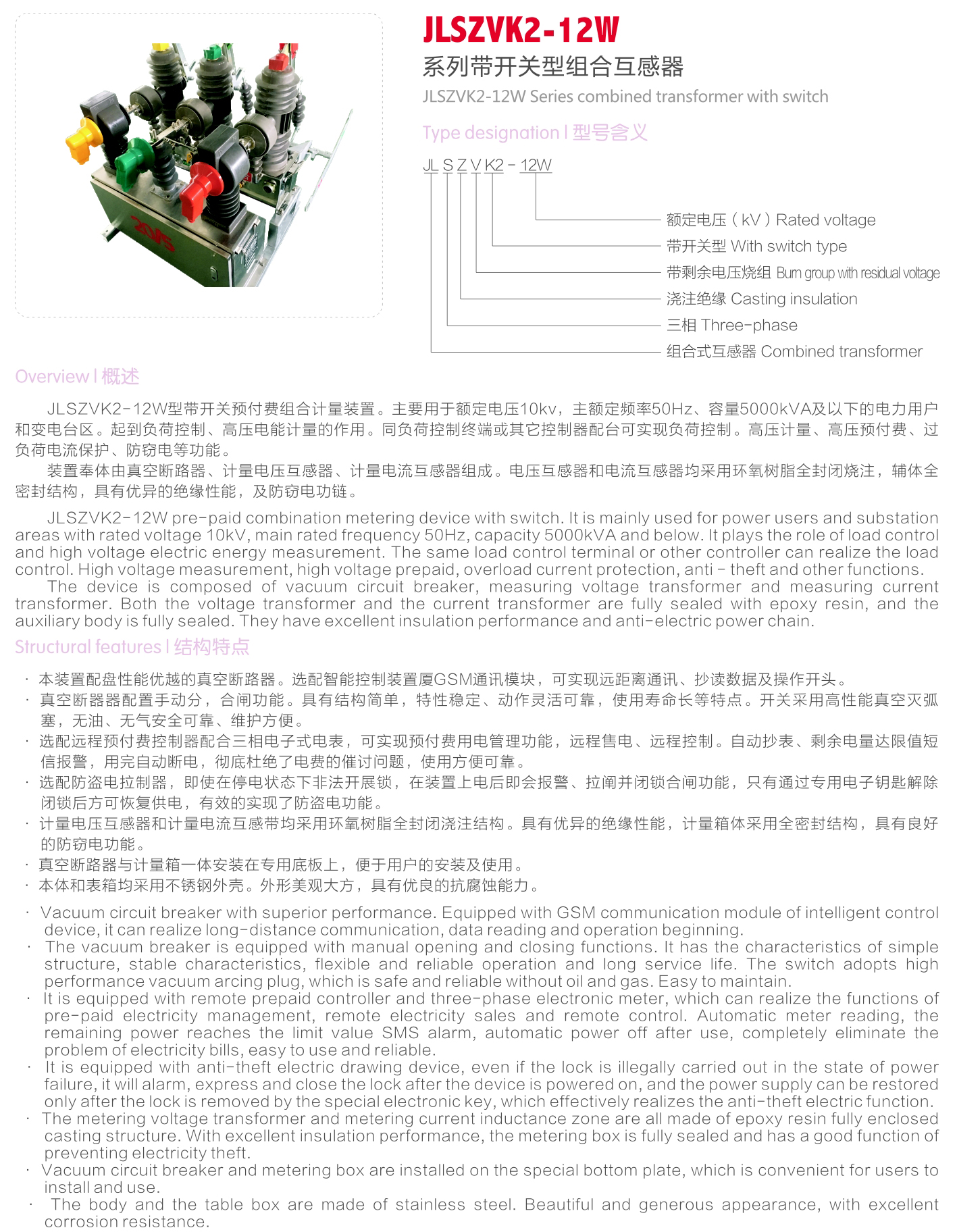 JLSZVK2-12W系列帶開關(guān)型組合互感器